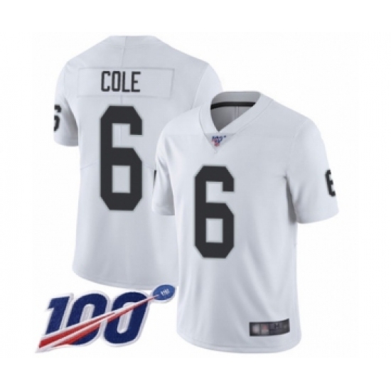 >Youth Oakland Raiders #6 A.J. Cole White Vapor Untouchable Limited Player 100th Season Football Jersey