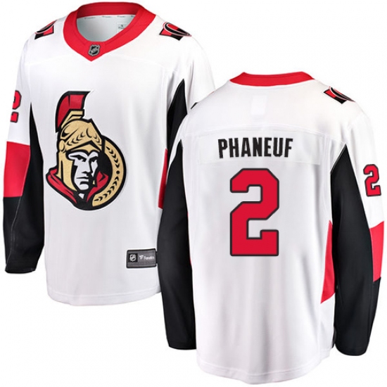 Youth Ottawa Senators #2 Dion Phaneuf Fanatics Branded White Away Breakaway NHL Jersey