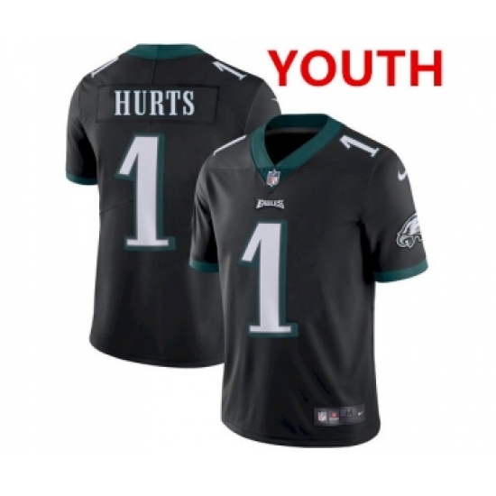 >Youth Philadelphia Eagles #1 Jalen Hurts Black Vapor Untouchable Limited Stitched Jersey