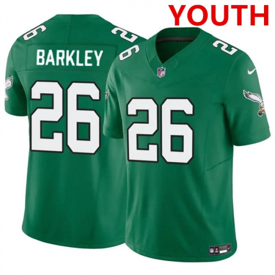 >Youth Philadelphia Eagles #26 Saquon Barkley Green 2023 F.U.S.E Vapor Untouchable Limited Throwback Football Stitched Jersey