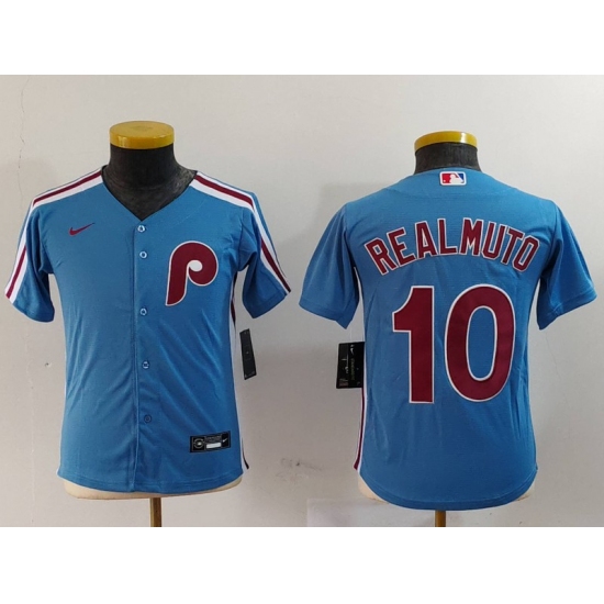 Youth Philadelphia Phillies #10 JT Realmuto Light Blue Cooperstown Cool Base Jerseys