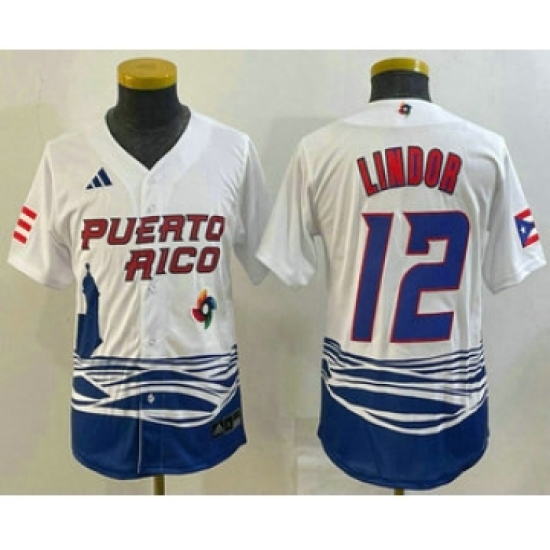Youth Puerto Rico Baseball #12 Francisco Lindor Number 2023 White World Baseball Classic Stitched Jersey1