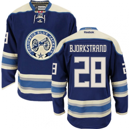Home>NHL>Columbus Blue Jackets>Oliver Bjorkstrand>Youth Reebok Columbus Blue Jackets #28 Oliver Bjorkstrand Authentic Navy Blue Third NHL Jersey
