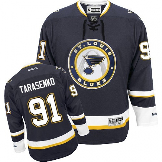 Home>NHL>St. Louis Blues>Vladimir Tarasenko>Youth Reebok St. Louis Blues #91 Vladimir Tarasenko Premier Navy Blue Third NHL Jersey