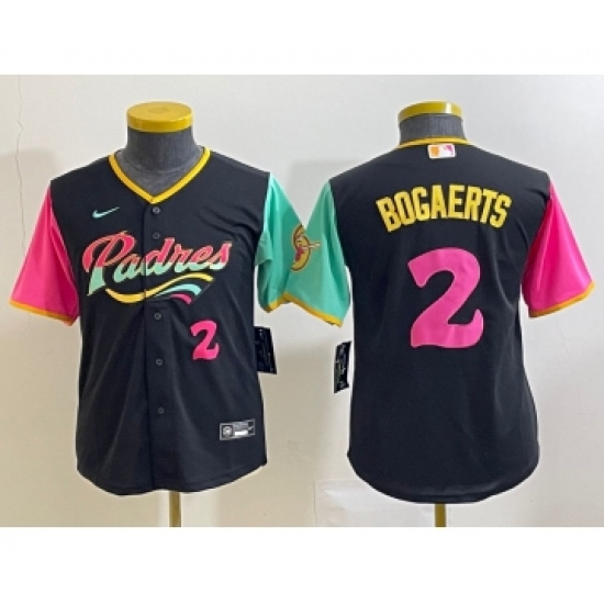 >Youth San Diego Padres #2 Xander Bogaerts Number Black NEW 2023 City Connect Cool Base Stitched Jersey