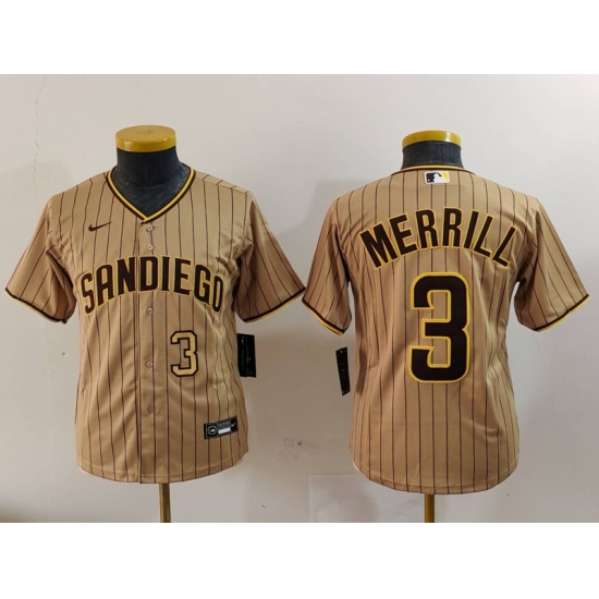 Youth San Diego Padres #3 Jackson Merrill Tan 2023 Cool Base Stitched Jerseys