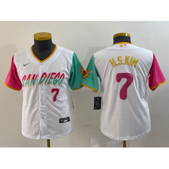 >Youth San Diego Padres #7 Ha Seong Kim Number White 2023 City Connect Cool Base Stitched Jersey