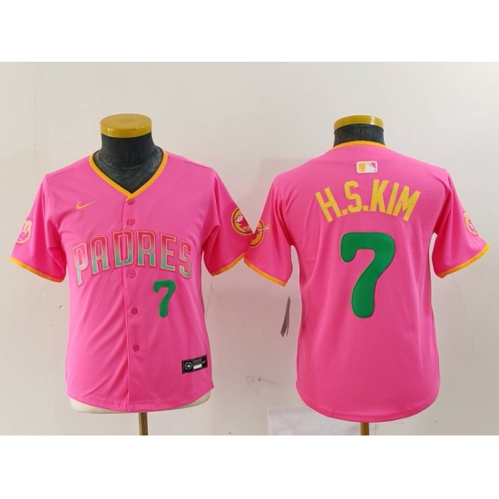 >Youth San Diego Padres #7 Ha Seong Kim Pink Player Number Fashion Baseball Jersey