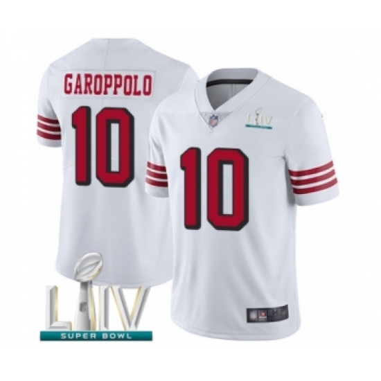 >Youth San Francisco 49ers #10 Jimmy Garoppolo Limited White Rush Vapor Untouchable Super Bowl LIV Bound Football Jersey