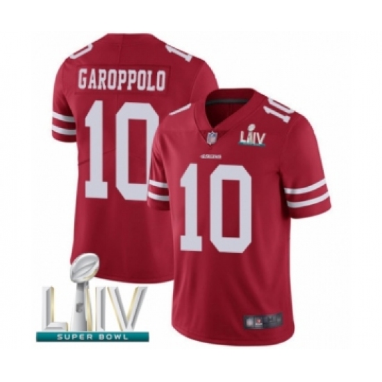 Youth San Francisco 49ers #10 Jimmy Garoppolo Red Team Color Vapor Untouchable Limited Player Super Bowl LIV Bound Football Jersey