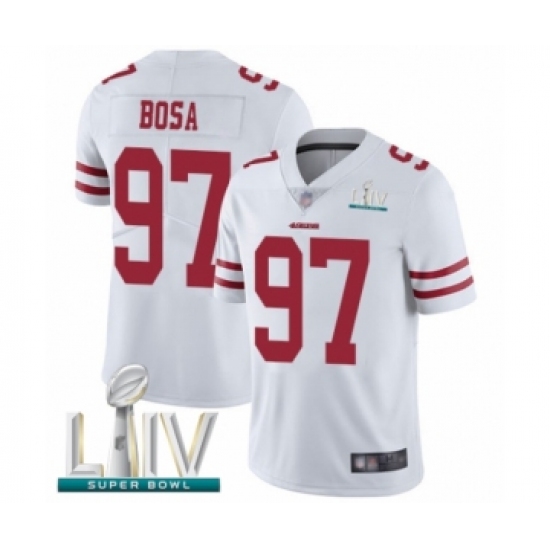 >Youth San Francisco 49ers #97 Nick Bosa White Vapor Untouchable Limited Player Super Bowl LIV Bound Football Jersey