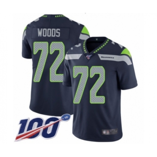 Youth Seattle Seahawks #72 Al Woods Navy Blue Team Color Vapor Untouchable Limited Player 100th Season Football Jersey