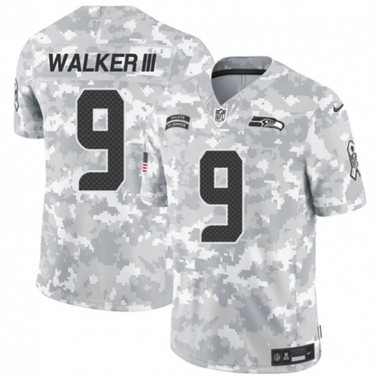 >Youth Seattle Seahawks #9 Kenneth Walker III 2024 F U S E Arctic Camo Salute To Service Limited Stitched Football Jersey