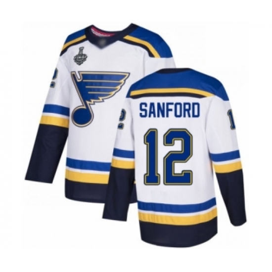 Youth St. Louis Blues #12 Zach Sanford Authentic White Away 2019 Stanley Cup Final Bound Hockey Jersey