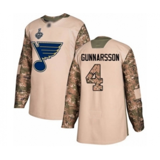 Youth St. Louis Blues #4 Carl Gunnarsson Authentic Camo Veterans Day Practice 2019 Stanley Cup Final Bound Hockey Jersey