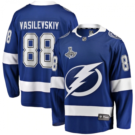 Men's Tampa Bay Lightning #88 Andrei Vasilevskiy Fanatics Branded Blue Home 2020 Stanley Cup Champions Breakaway Jersey