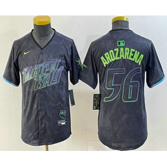 >Youth Tampa Bay Rays #56 Randy Arozarena Charcoal 2024 City Connect Limited Stitched Jersey