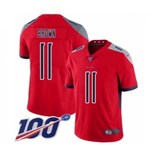 >Youth Tennessee Titans #11 A.J. Brown Limited Red Inverted Legend 100th Season Football Jersey