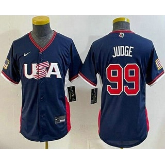 Youth USA #99 Aaron Judge Navy 2026 World Baseball Classic Cool Base Jersey