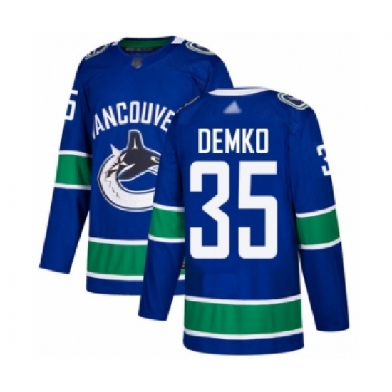 >Youth Vancouver Canucks #35 Thatcher Demko Authentic Blue Home Hockey Jersey