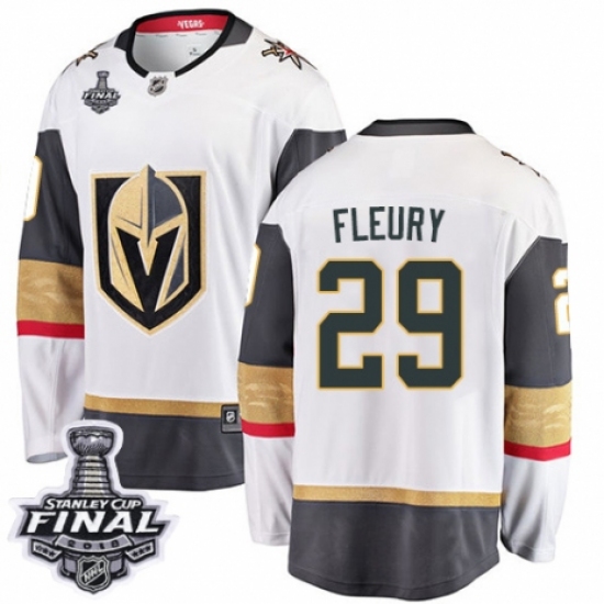 >Youth Vegas Golden Knights #29 Marc-Andre Fleury Authentic White Away Fanatics Branded Breakaway 2018 Stanley Cup Final NHL Jersey