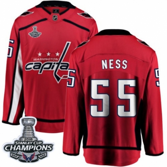 >Youth Washington Capitals #55 Aaron Ness Fanatics Branded Red Home Breakaway 2018 Stanley Cup Final Champions NHL Jersey