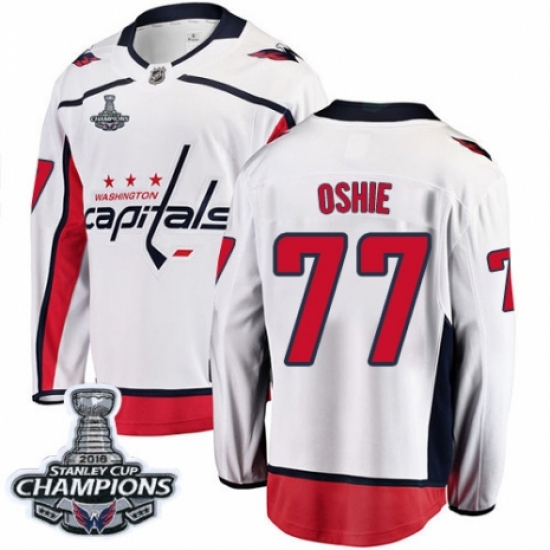 Youth Washington Capitals #77 T.J. Oshie Fanatics Branded White Away Breakaway 2018 Stanley Cup Final Champions NHL Jersey