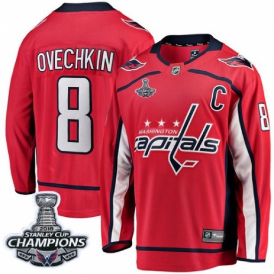 >Youth Washington Capitals #8 Alex Ovechkin Fanatics Branded Red Home Breakaway 2018 Stanley Cup Final Champions NHL Jersey