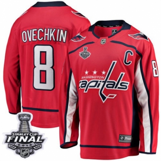 >Youth Washington Capitals #8 Alex Ovechkin Fanatics Branded Red Home Breakaway 2018 Stanley Cup Final NHL Jersey