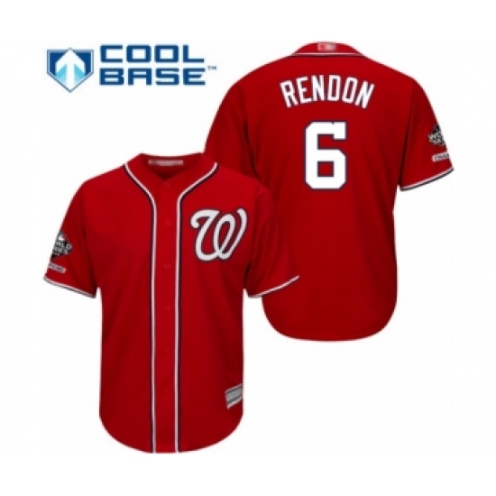 >Youth Washington Nationals #6 Anthony Rendon Authentic Red Alternate 1 Cool Base 2019 World Series Champions Baseball Jersey