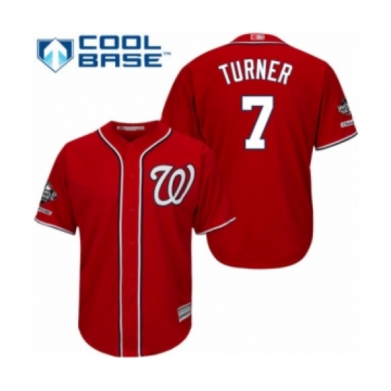 Youth Washington Nationals #7 Trea Turner Authentic Red Alternate 1 Cool Base 2019 World Series Champions Baseball Jersey
