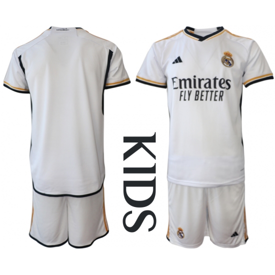 kids Real Madrid Blank 2023-24 White Home Soccer Jersey